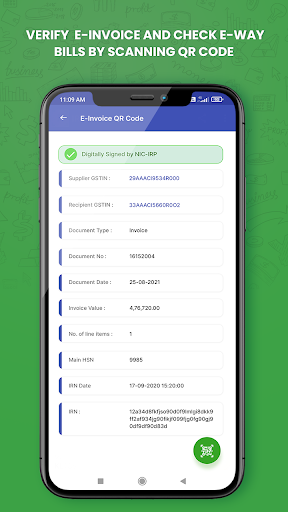 مع الإملاء الإلكتروني ، يصبح من الضروري أن يكون لديك أداة لإلغاء توضيح رمز QR. يمكن لـ IRIS Peridot 5.0 فحص رمز QR QR E-In-In-In-In-Way Bill QR لإعطاء ملخص IRN الكامل. يتم التحقق من رموز QR أيضًا للتوقيع الرقمي للتأكد من توليدها من النظام المباشر.