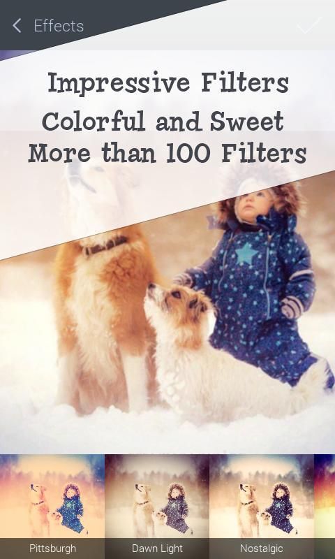 تمتد إبداعك مع لوحة من أكثر من 30 الآثار، بما في ذلك المفضلة مثل النظير، ومو، النيون، ريترو، خمر، B & W وغيرها الكثير! محاولة تأثيرات متعددة على صورة واحدة للحصول على نتائج مذهلة!