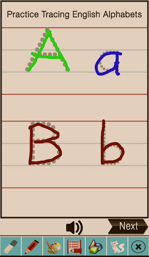 Alphabets/ABC or A-Z with tracing on dotted lines will help improve kid's handwriting. 4 line Tracing with audio for Alphabets/ABC provides better understanding and help learning ABC. Tracing Alphabets on 4 lines with audio