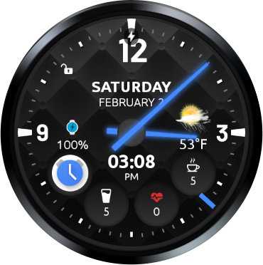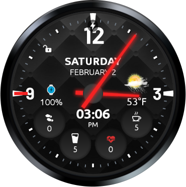 ) والتي توفر للمستخدم المزيد من الخيارات لإظهار على وجه الساعة (اختصارات FE لجميع التطبيقات المثبتة في الساعة، بيانات النظام مثل اليوم الليالي أشعة الشمس، والمناطق الزمنية، والطقس، وأكثر من ذلك بكثير)