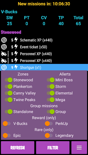 يساعد التطبيق اللاعبين على الحصول على معلومات مفيدة حول المكافآت في تنبيهات المهمة في Save The World Pve.عرض التطبيق كم عدد V-Bucks والعناصر الموجودة اليوم في المواقع.
