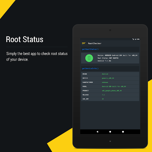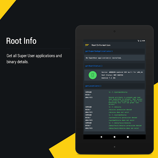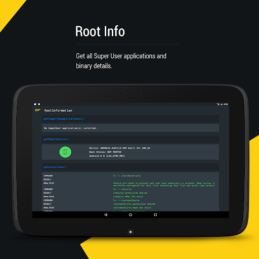 يقوم المدقق الجذر بالتحقق من حالة الجذر (Supersu) لجهاز Android الخاص بك.لن تثير أو تثبيت مكتبة Superuser (SU).يتيح Rooting للمستخدمين تحقيق التحكم المميز (المعروف باسم "الوصول إلى الجذر").بعد التحقق من حالة الجذر، يمكنك مشاركته عبر Facebook و Twitter وغيرها من التطبيقات.