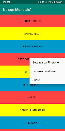 Aplicatie care contine cele mai amuzante meme-uri din mediul online si TV din Romania, apartinand unor legende ca Gigi Becali, Nelson Mondialu', Vadim Tudor, Ioan Becali, Satana Cartoons (create de Codrin Bradea) etc. Ofera optiuni de distribuire a continutului sau setarea sunetelor ca ringtone/alarma, ca sa va puteti bucura de cele mai tari meme-uri romanesti impreuna cu prietenii.