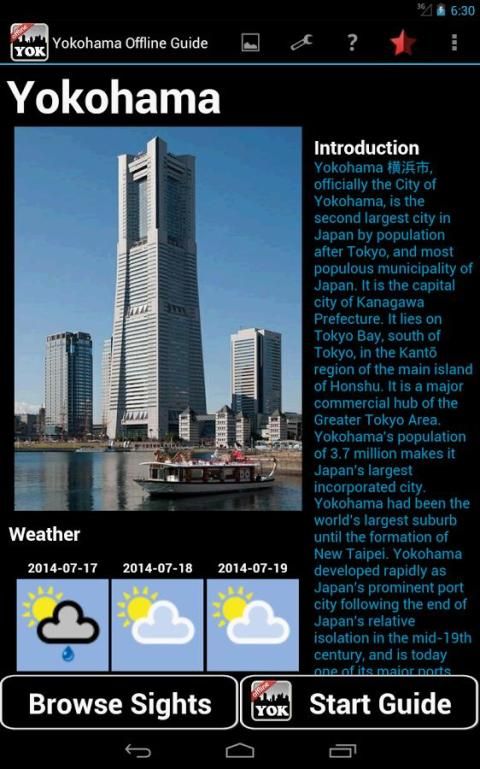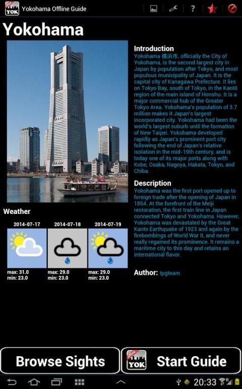 يوكوهاما (اليابان) دليل غير متصل هو أحد التطبيقات التي توفر يوكوهاما خريطة المدينة خريطة مترو الانفاق، قائمة المعالم، معلومات عن الفندق، دليل الهاتف، والعبارات المفيدة في اللغة والحانات المحلية والمعلومات المطعم. إذا قمت بزيارة يوكوهاما أو يعيشون هناك، سيكون من الضروري تطبيق.