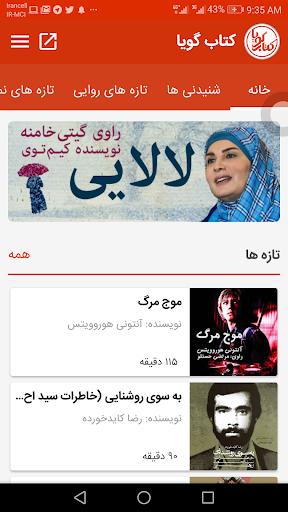بخش پایگاه کتاب گویا این برنامه شامل پخش آنلاین و دریافت رایگان کتاب های گویای با کیفیت محتوایی و فنی بالا (کتاب صوتی و کتاب شنیداری)