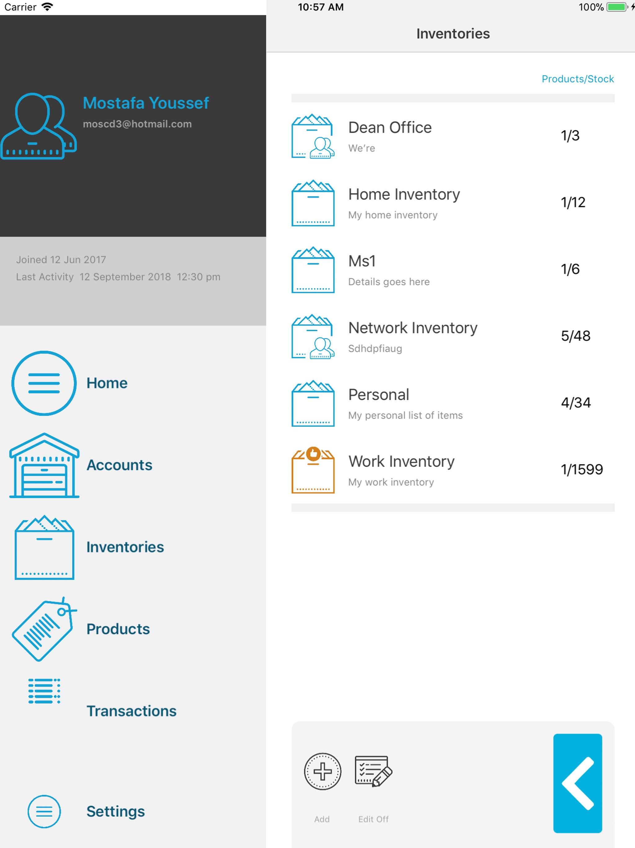 (warehouse and inventory) management App. With mItems, you can add accounts (Warehouses), add inventories to accounts, add products (Items), share inventories to allow other users to modify and update on your stock.