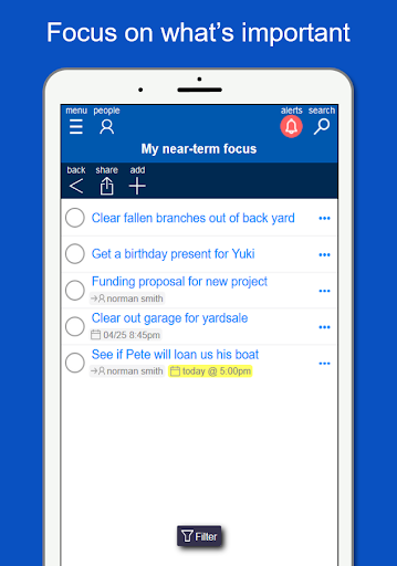 Nexxle يجعل من السهل الحصول على Todos الخاصة بك، ولكنها تجعل من السهل أيضا التعاون مع زملاء العمل والأصدقاء والعائلة أو الشركاء التجاريين أو أي شخص. Nexxle مجاني وسهل الاستخدام. من خلال تعيين عنصر إلى شخص آخر، يمكنك دعوتهم تلقائيا إلى Nexxle. لا يحتاجون حتى إلى تنزيل Nexxle في البداية، فيمكنهم استخدام إصدار الويب للتفاعل معك حتى يقررون تنزيل Nexxle لأنفسهم.
