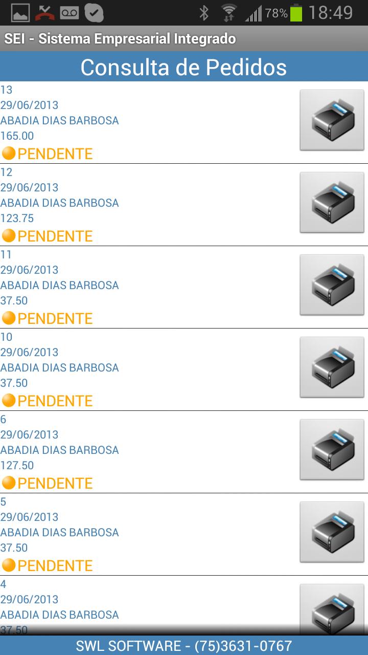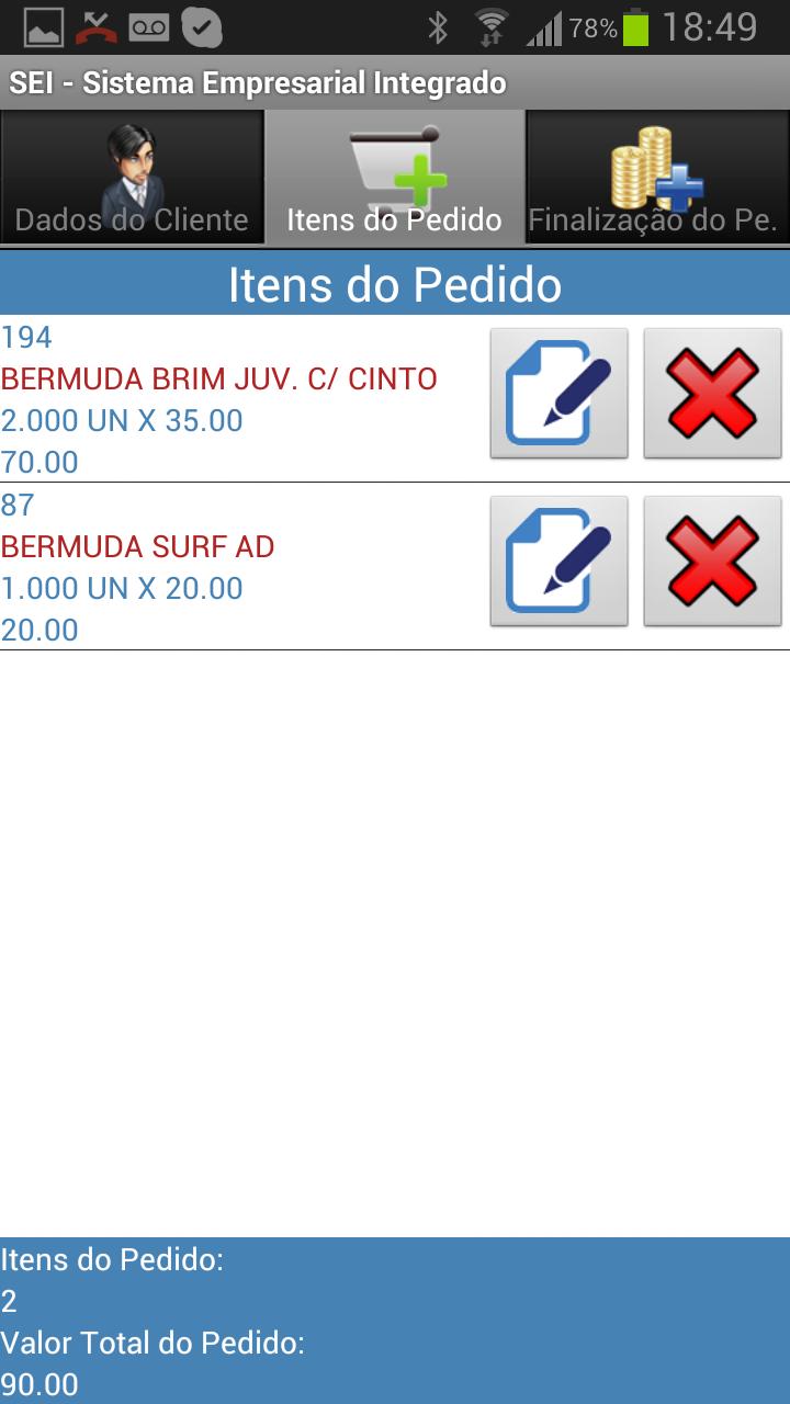 Além das funcionalidades de venda, o "SEI" permite impressão dos pedidos em impressora bluetooth, consulta de títulos em aberto, recebimento dos títulos pelo vendedor, etc. Funciona em modo off-line, ou seja, não depende de conexão de dados para funcionamento, permitindo sincronização posterior em prazos pré-estabelecidos pela empresa.