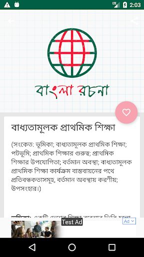আমার অ্যাপের পক্ষ থেকে সবাইকে স্বাগতম। বাংলা রচনা সমগ্র (Bangla Essay Collection) নিয়ে বানানো আমাদের এই অ্যাপ। বিশেষ করে JSC, SSC ও HSC শিক্ষার্থীদের বাংলা দ্বিতীয় পত্রের রচনার সমাধান নিয়ে বানানো এই অ্যাপ। এখানে ২০০ বাংলা রচনা সংগ্রহ রয়েছে। যেসব রচনা এই অ্যাপে রয়েছে-