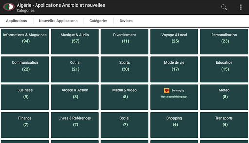 আপনি 1.5 মিলিয়ন অ্যাপ্লিকেশনের মধ্যে অনুসন্ধানের পরিবর্তে কয়েক সেকেন্ডে আলজেরিয়া সম্পর্কিত অ্যাপ্লিকেশন এবং গেমগুলি খুঁজে পেতে পারেন।