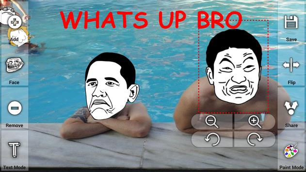 Didn't like the selected meme? Just change it for another one. You don’t want a meme on that face? Just press the remove button. Do you want to add another meme to the photo? Just select one and move it to any position on the picture. You can also alter the size of the memes and rotate them. After your photo is done, it is time to share it with your friends through the most popular social networks with just a few clicks.