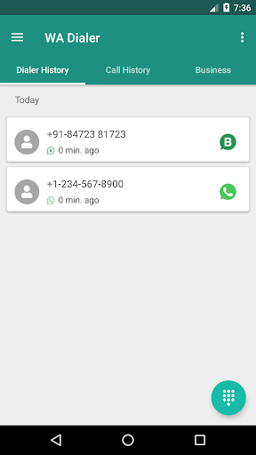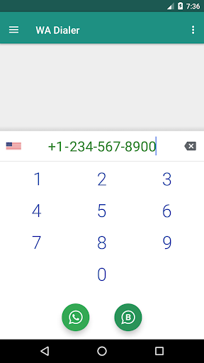 Dialer For WhatsApp includes the familiar dialer where you input the number, hit the WhatsApp button, and viola - WhatsApp opens chat with that number!