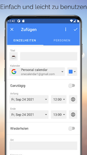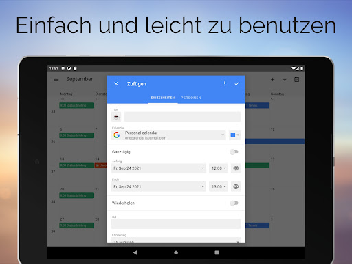 Die popularste App um alle Ihre Kalender anzuschauen wie Google, Live, Outlook, iCloud, Exchange, Office365, Yahoo, Nextcloud, Synology, GMX, Mailbox.org, ownCloud und mehr. OneCalndar integriert alle Ihre Kalender in einem einfach lesbaren Überblick. Betrachten und verwalten Sie alle Termine, Ereignisse und Geburtstage.