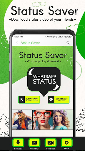 Status Saver Downloader for Whatsapp app let you download photo images, GIF, Video of new status feature of Whatsapp new App 2020 account also it allows to share right from app to your friends saver and editors status app.