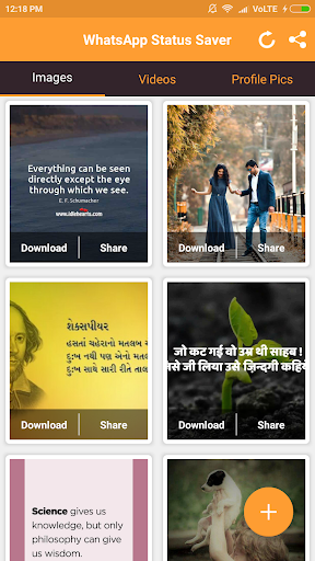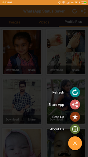 2- Offene App Es wird Fotos, Videos und Profilbild angezeigtDementsprechend, was Sie wollen wie teilen oder herunterladen