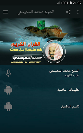 ◾️ القران الكريم كاملا بصوت الشيخ محمد المحيسني تطبيق رائع جداً يحتوي هذا التطبيق على تلاوات القرآن بصوت جميل للقارئ الشيخ محمد المحيسني.