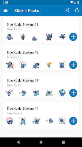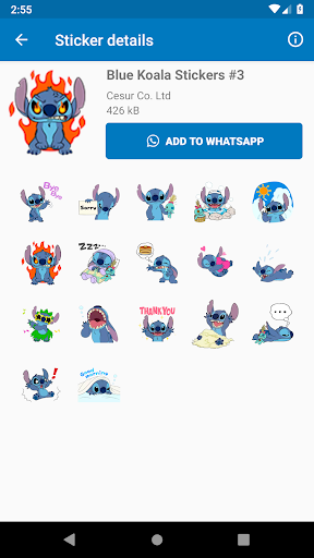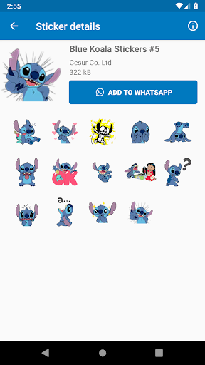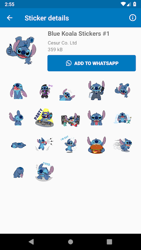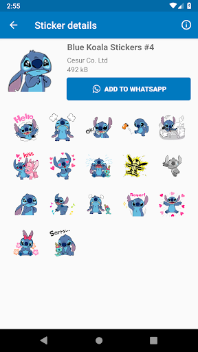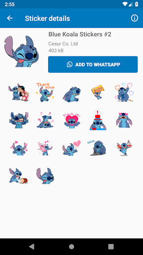 Diese App enthält blaue KOALA-Aufkleber, die auch als Stitch-Aufkleber für WhatsApp Messenger bekannt sind. Die blaue Koala-Stitch-App hat viele Aufkleber von berühmter Cartoon mit blauen Koala, die üblicherweise für die süße Liebesgeschichte zwischen Stich und Engel.