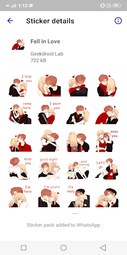 Love Stickers for WhatsApp is all-new romantic and lovely stickers for your love. Express your love with the new collection of romantic love stickers for WhatsApp. Share with your lover and make your conversations more warm and cozy. With the help of Love Stickers, you’ll be able to express your cute and romantic feelings better and have a lovely conversation with your partner.