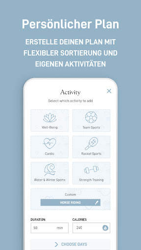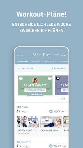 Mahlzeiten & Workout Planer: strukturiere deine Woche und füge deine liebsten Rezepte und Sport Videos hinzu.