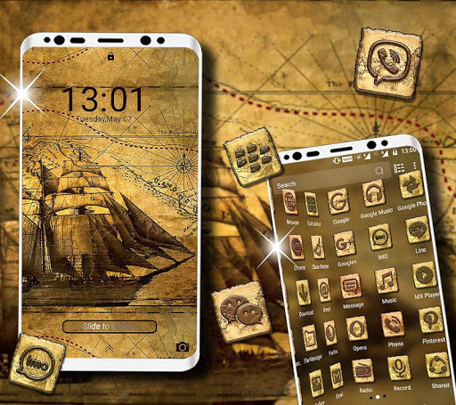 Descargue y aplique el tema del tesoro de forma gratuita y estilice su teléfono Android. Los temas del tesoro contienen paquetes de iconos de todos los populares y amp; Iconos comunes de aplicaciones con papel tapiz HD Treasure Ship Wallpaper. Además, este lanzador contiene elegante pantalla de bloqueo para decorar su teléfono general.