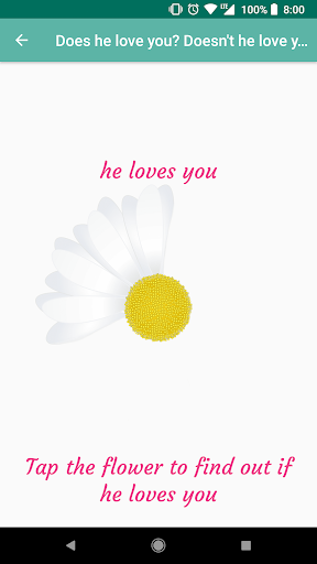 - Finally, we wanted to give the app a funny touch with the game "does he love me or not".