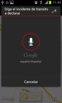 Para acceder a esta funcionalidad de declarar incidentes se requiere tener el GPS encendido, reconocimiento de voz de google instalado y el cliente de twitter configurado.