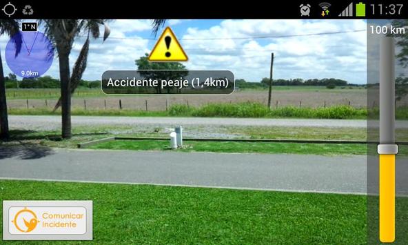 Permite ver en tiempo real incidentes e información de tránsito, utilizando un mapa o Realidad Aumentada (es necesario tener la brújula calibrada para RA o 3D).
