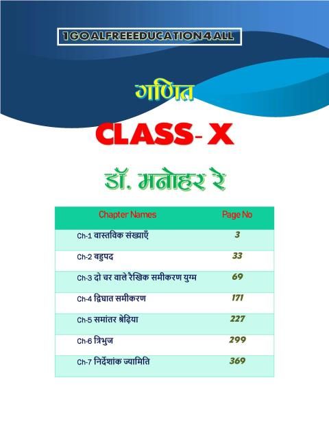 हिंदी में 10 वीं कक्षा का गणित हल डॉ। मनोहर रे बुक ऐप शामिल: (सामग्री)