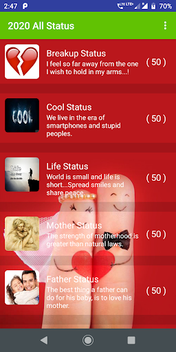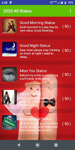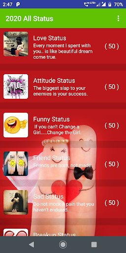 2021 All Best Status is an app provide collection of categories completely free and offline.