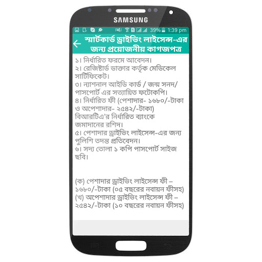बांग्लादेश रोड ट्रांसपोर्ट अथॉरिटी (बीआरटीए) को ड्राइविंग लाइसेंस से संबंधित जानकारी के लिए मिरपुर कार्यालय में सूचित किया जाता है। सहयोगी और विभिन्न विभागों में बात करने वाले अधिकारी हैं।