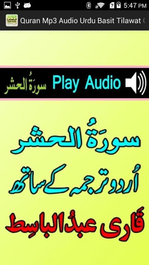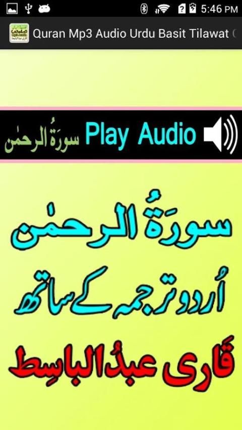 यह इंटरनेट के बिना Qr बासित के साथ उर्दू Tarjumah अनुवाद, ऑडियो खेलने की आवाज में ऑडियो एमपी 3 खेलने जो कुरान ऑडियो एल्बम का सबसे अच्छा अनुप्रयोग है।