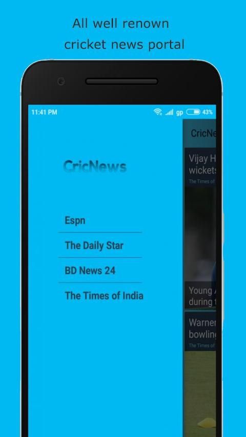Cric समाचार जो क्रिकेट से संबंधित अद्यतन लेख प्रदान करते हैं एक क्रिकेट खबर क्षुधा है। इस एप्लिकेशन को सभी लोकप्रिय वेबसाइट क्रिकेट खबर पढ़ने के लिए मदद मिलेगी। आप इस तरह के आईपीएल समाचार, बिग बैश लीग अद्यतन, गरीबी रेखा से नीचे खबर, सीपीएल समाचार, नवीनतम क्रिकेट सब कुछ खत्म क्रिकेट लीग के साथ ही अंतरराष्ट्रीय क्रिकेट और घर क्रिकेट से वैश्विक समाचार के रूप में लोकप्रिय क्रिकेट खबर पढ़ सकते हैं।