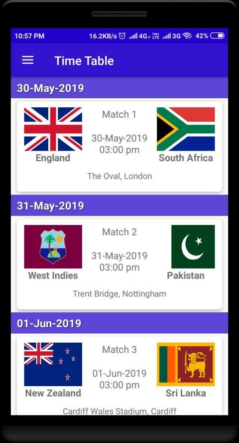 The Application Provides the World Cup 2019 Information as the 2019 Schedule is out. The 2019 edition of the World Cup begins on 30 May as England take on South Africa at The Oval.