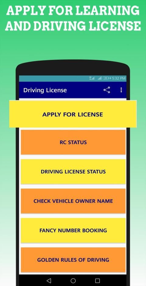 No need to go anywhere for getting Learners License or Driving License, just use this app and make your Driving License online at your Home. This app is available for all the States of India. So apply for Driving License in Rajasthan, Arunachal Pradesh, Assam, Bihar, Chattisgarh, Sikkim, Chandigarh, Dadra Nagar Haveli, Daman and Diu, Delhi, Goa, Gujrat, Haryana, Himachal Pradesh, Gujrat, Jammu and Kashmir, Jharkhand, Karnataka, Kerela, Maharashtra, Manipur, Meghalaya, Mizoram, Nagaland, Odissa, Pondicherry, Punjab, Tamil Nadu, Tripura, Uttarakhand, Uttar Pradesh and West Bengal.