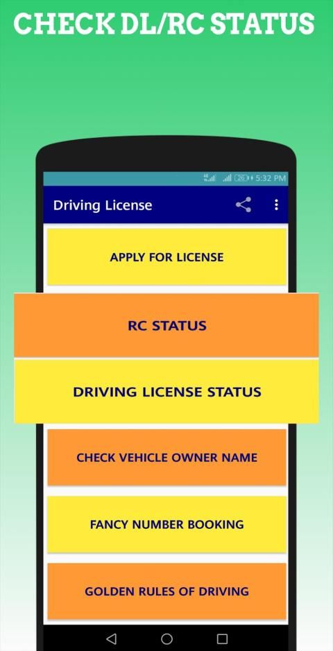 आप हमारे ऐप से RC और ड्राइविंग लाइसेंस स्टेटस भी देख सकते हैं। इसके अलावा, आप पंजीकरण संख्या (वाहन पंजीकरण विवरण) द्वारा वाहन स्वामी का विवरण ऑनलाइन देख सकते हैं।