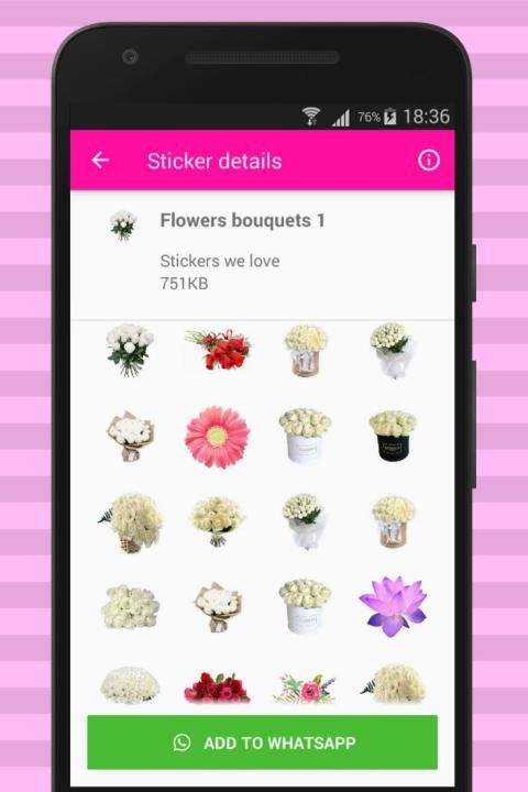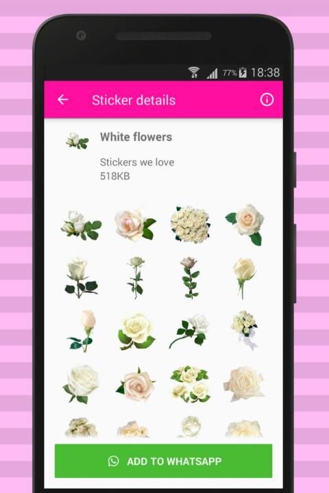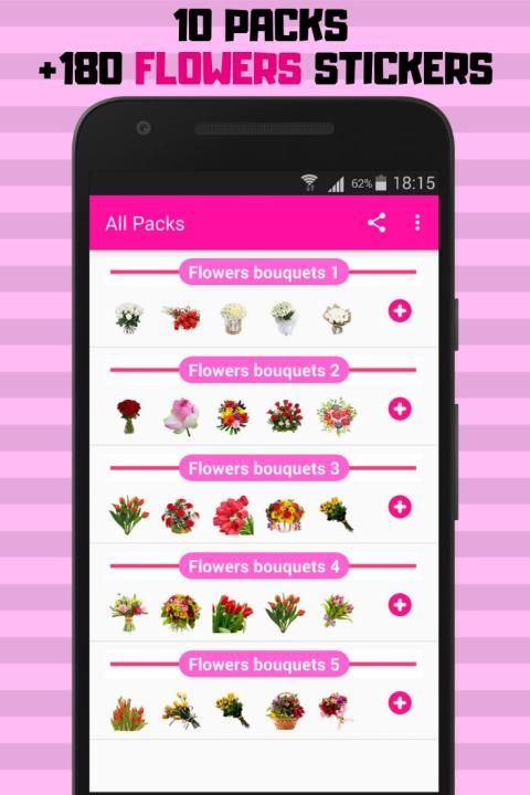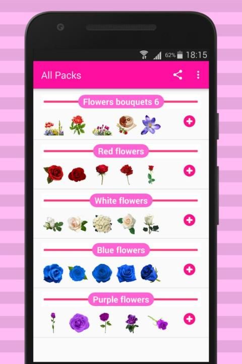 इस एप्लिकेशन में बहुत सारे सुंदर फूल स्टिकर पैक शामिल हैं: