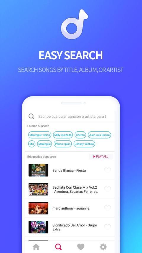 * आप आसानी से कीवर्ड या कलाकारों द्वारा गाने खोज सकते हैं।