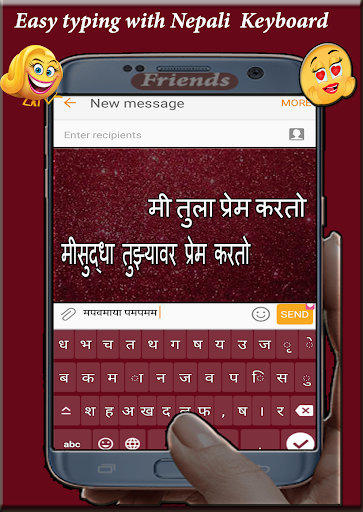 दोस्तों के लिए थीम के साथ नेपाली कीबोर्ड कीबोर्ड आपको नेपाली भाषा में नेपाली शब्द ऑटो समापन और अगले नेपाली शब्दों की भविष्यवाणी के लिए सुझाव प्रदान करता है। अभी डाउनलोड करें नेपाली भाषा के अधिकांश फैंसी और स्टाइलिश नेपाली टेक्स्ट टाइपिंग और स्टाइलिश नेपाली फ़ॉन्ट के लिए नेपाली भाषा कीबोर्ड।
