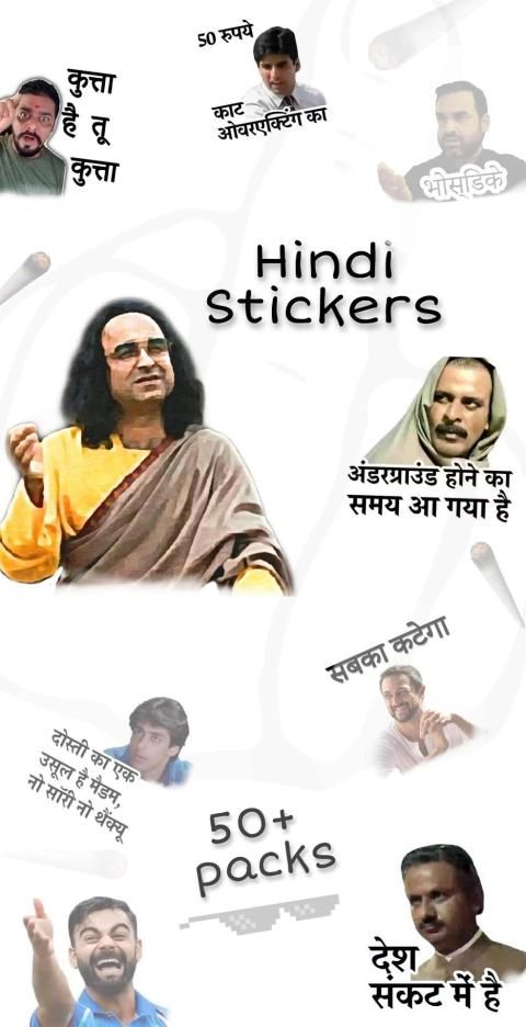 - Mirzapur - Hindustani bhau - Apaharan - Reaction - Sacred games - Thugs talks - SalmanKhan - Akshay kumar - BB ki vines - Cricketers - Girls Gang - Many more hindisticker