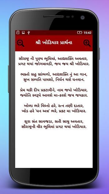 This app gives you Maa Khodiyar's Aarti, Stuti, Prarthna, Chalisa, Chadi in Gujarati language.