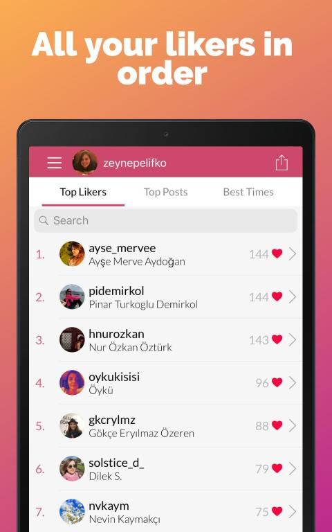 Using the ‘share’ button, you can create your top liker lists. You can share these lists with your friends with just one click. After you share this list, your friends will like your posts much more than before!