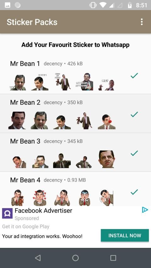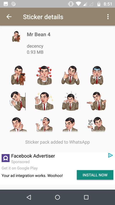 व्हाट्सएप के लिए मजेदार मेमेस एमआर बीन स्टिकर (WAStickerapps) पैक ऐप का नया संग्रह जोड़ा जाएगा, अपने ऐप को हमेशा नवीनतम संस्करण के साथ रखना न भूलें, क्योंकि नए इमोजी या स्टिकर को जोड़ा जा सकता है।
