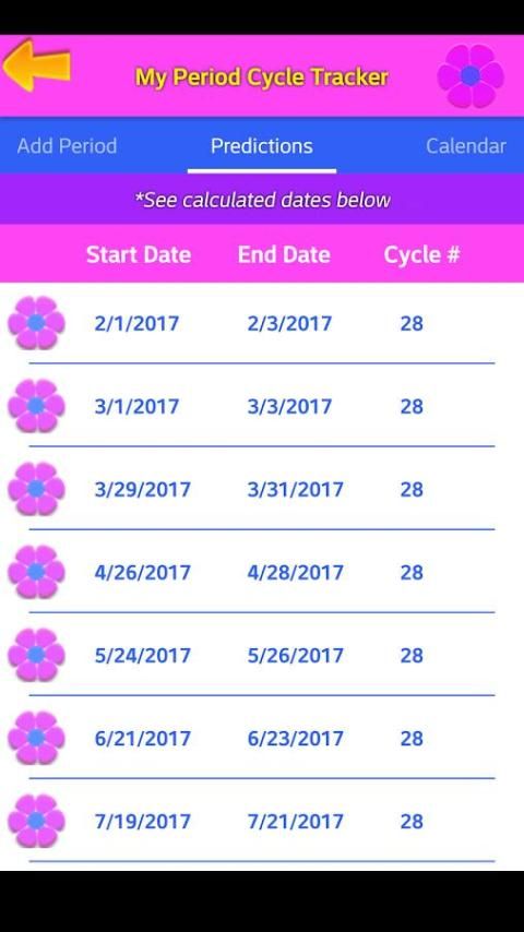 एक बार या हर महीने अपने अवधि तिथियों लॉग ऑन करें। में app कैलेंडर पर अपने अनुमान दिनों देखें।