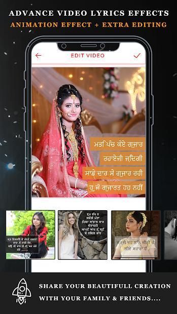Create and share lovely Punjabi Music video within a minute with your personalized. create your own music video with your personalized photos and texts. just pick your images and select best lyrics and you are done with awesome video. You can share it on your Facebook, Instagram, Whatsapp story.