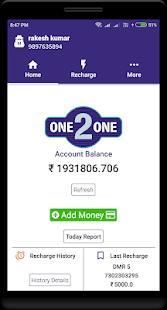 One2One Money is a company specializes in Mobile, Data Card and DTH recharge technologies. One2One Money is India's first 24/7 recharge platform that provides recharge facilities of all the telecom service providers, Data Card and DTH operators through the Internet and Mobile channels. It is amongst the Top three privately owned, operator independent, neutral recharge website servicing more than a thousand plus registered mobile customers.