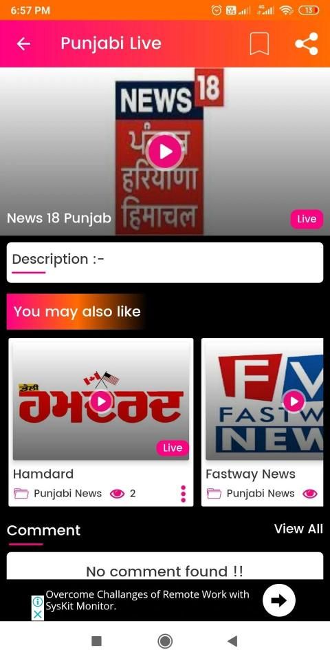 Punjabi newspaper and Punjabi news TV channel available in this app.
