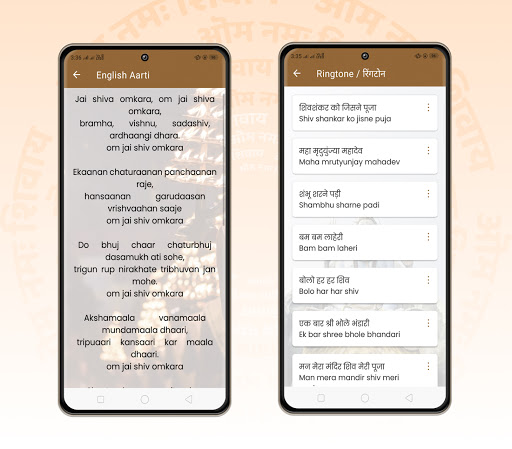 इस एप्लिकेशन में शिव रिंगटोन में शिव के 108 नाम, शिव रिंगटोन, शिव आरती और ज्योतिर्लिंग का विस्तार भी शामिल है।