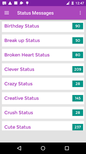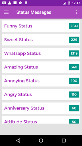 स्थिति संदेशों के सर्वोत्तम संग्रह में से एक का पता लगाएं और इसके 100% निःशुल्क भी इंटरनेट कनेक्शन की आवश्यकता नहीं है।