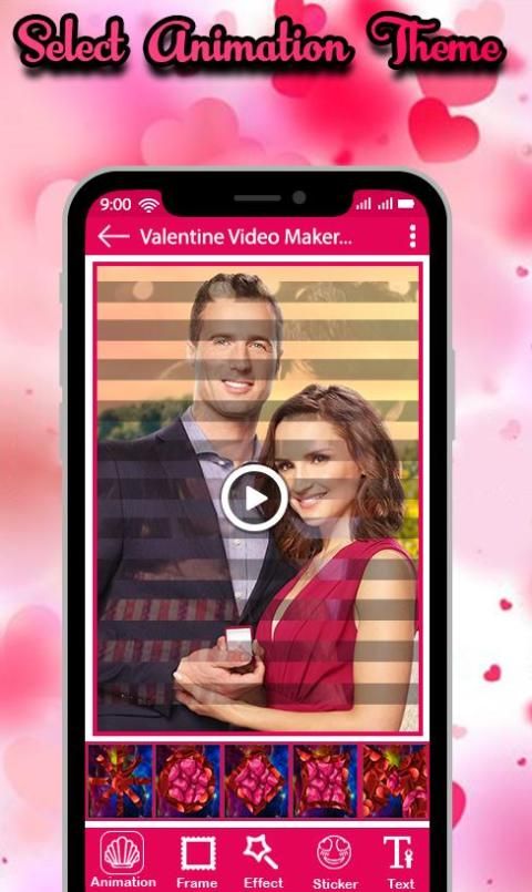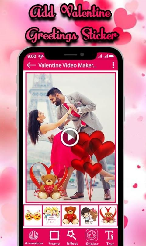 Valentine Day Video Maker with Music have lots of Valentines Day HD themes and valentine Stickers to apply on Valentines Day photos to create video from images and Valentines Day music.