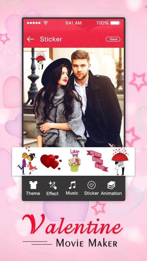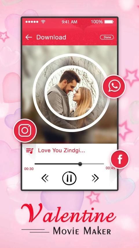 वेलेंटाइन वीडियो मेकर अद्भुत प्रेम संगीत वीडियो बनाने, संपादित करने और साझा करने का आसान तरीका है।